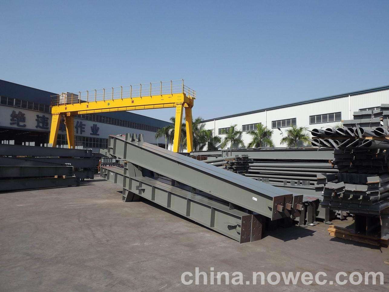 条状单元一般沿长跨方向分割,其宽度约为1~3个网格,其长度为l2或l2/2(l2为短跨跨距)。块状单元一般沿烟台网架平面纵横向分割成矩形或正方形单元。每个单元的重量以现有起重机能胜任为准。条(块)与条(块)之间可以直接拼装,也可空一网格在高空拼装。由于条(块)状单元是在地面拼装,因而高空作业量较高空散装法大为减少,拼装支架也减少很多,又能充分利用现有起重设备,故较经济。这种安装方法适用于分割后网架的钢度和受力状况改变较小的各类中小型网架,如两向正交正放四角锥、正放抽空四角锥等网架。